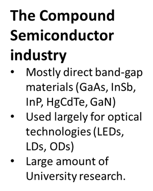 Then there was the compound semiconductor area. Totally different, based on Telecoms, like AT&T, British Telecom and others, some hi-tech companies like Phillips and then, of course, the Universities. There was no central hub like Silicon Valley was for the silicon people, but it had many centres of excellence all over the developed world.
